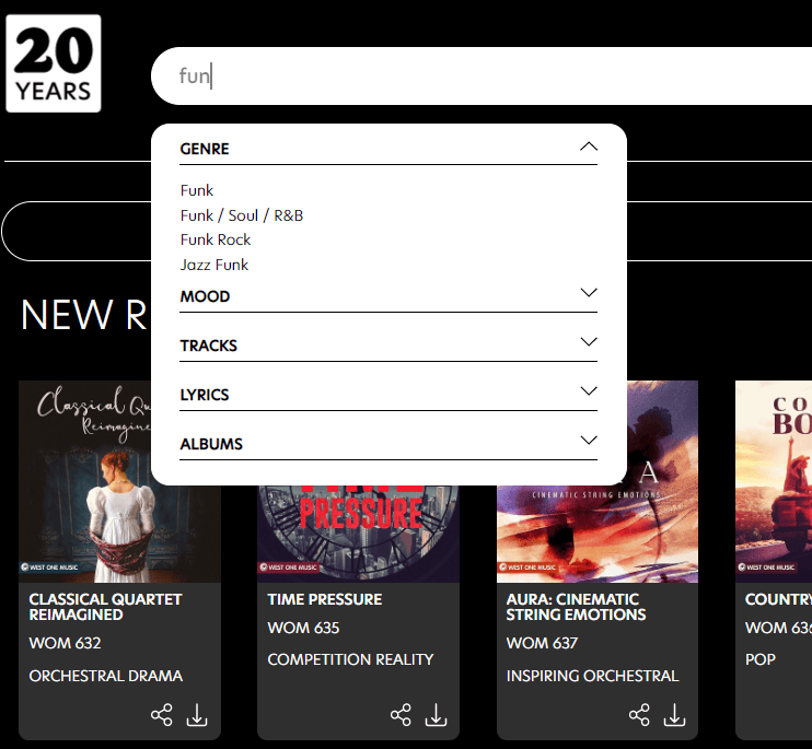 Vous pouvez désormais effectuer des recherches spécifiques dans notre catalogue (par exemple, BPM, clef musicale, humeur, instrument, etc.)